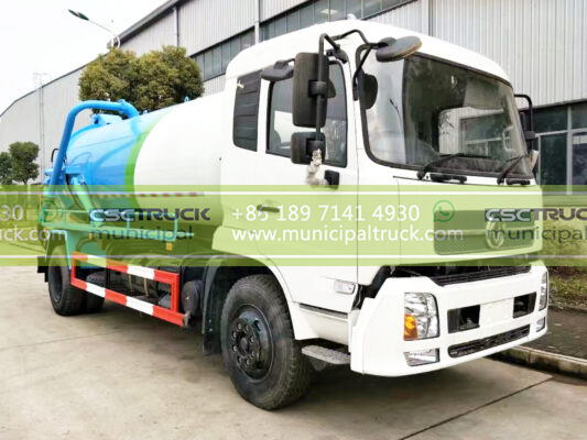 DONGFENG 16 Ton Small Vacuum Sewage Truck tank capacity ranged from a minimum of 2000 liters to 5000 liters maximum, and the tank is fabricated from high tensile steel thick in 5mm, and designed to suck effluents from cesspit, sewer, etc. by creating a vacuum inside the tank by PTO operated vacuum pump FLOWSERVE LEMC90 Liquid ring vacuum pumps, suction volume flow: 20 to 200 m³/h. The tank contents are tipped by two lift cylinders for discharging by gravity or creating pressure inside the tank by a vacuum pump for fast emptying.