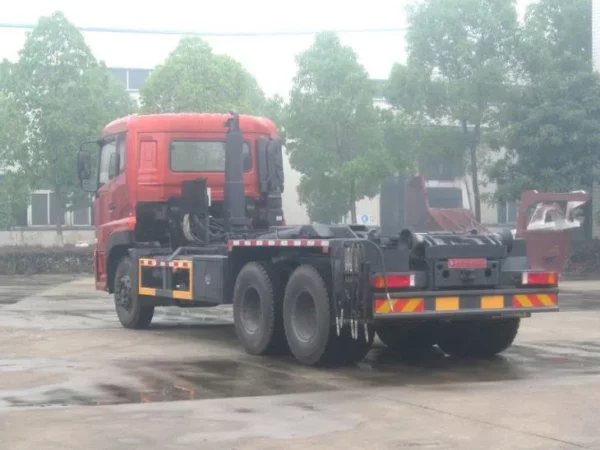 In a closed structure, and the compartment is equipped with left and right side doors and a rear door. Open the side door of the compartment, you can put garbage into the box; open the rear door, and lift the compartment to unload the garbage. The rear door is equipped with high-quality sealing strips, which can effectively prevent the leakage of dirty water and eliminate secondary pollution.