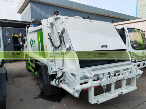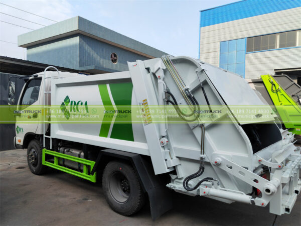 The garbage compactor truck is composed of a sealed body, ejector plate, compaction plate, hopper, lifting device, hydraulic system, and control system. The advanced hydraulic system, the pilot-type back pressure design, and the peristaltic compression technology are used, which greatly improves the compression capacity.