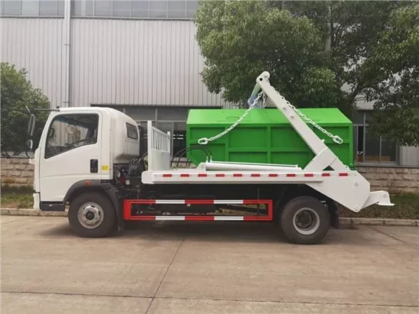 This HOWO Skip Loader Garbage Truck is mainly composed of swing arm structure, hopper, hydraulic system and operating system. Suitable for the general garbage bucket, with self-unloading function, hydraulic operation, the garbage bucket can be lifted up and down by itself, which reduces the labor intensity of workers and realize more than one container in one truck, greatly reducing the equipment cost and space, etc.