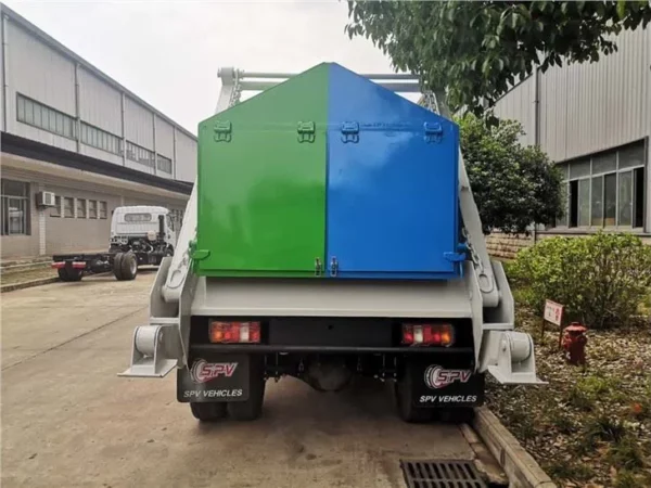 The rear part is designed with double outriggers, which are controlled by hydraulic multi-way valve, keep the vehicle stable and safe when pulling the garbage bin up and down.