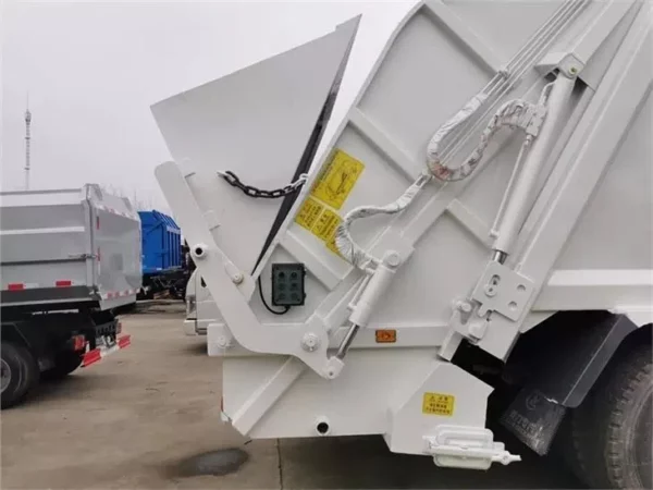 • The junction of the hopper and the refuse body is locked by a sealing strip through hydraulic locking. A sewage tank is separately designed to collect the sewage generated during the garbage compression process, effectively avoiding secondary pollution.
