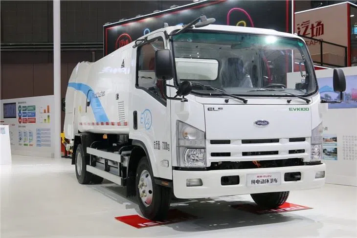 – ISUZU New Energy Garbage Truck, EVK100 realizes integrated intelligently control of garbage tank and chassis system, and transmission is of high efficiency, largely reduces the energy consumption, and improves the driving range and operation time.