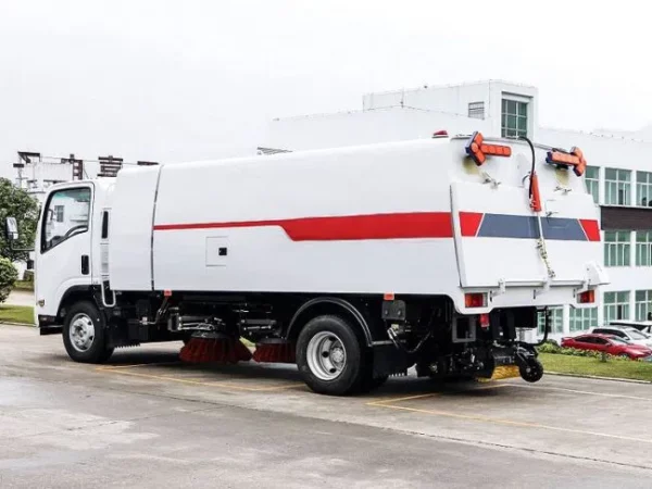 -It adopts the combination of suction and sweeps to collect garbage, wet dust removal, electro-hydraulic control, and hydraulic tipping and unloading to clean the road surface.
