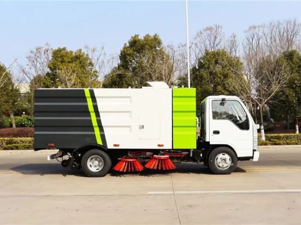 Four disc typed brooms equipped between front and rear axle , symmetric in right and left side of the truck drive by gerotor motors. |