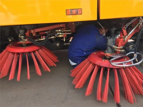 Type: Four disc typed brooms equipped between front and rear axle , symmetric in right and left side of the truck drive by gerotor motors. |